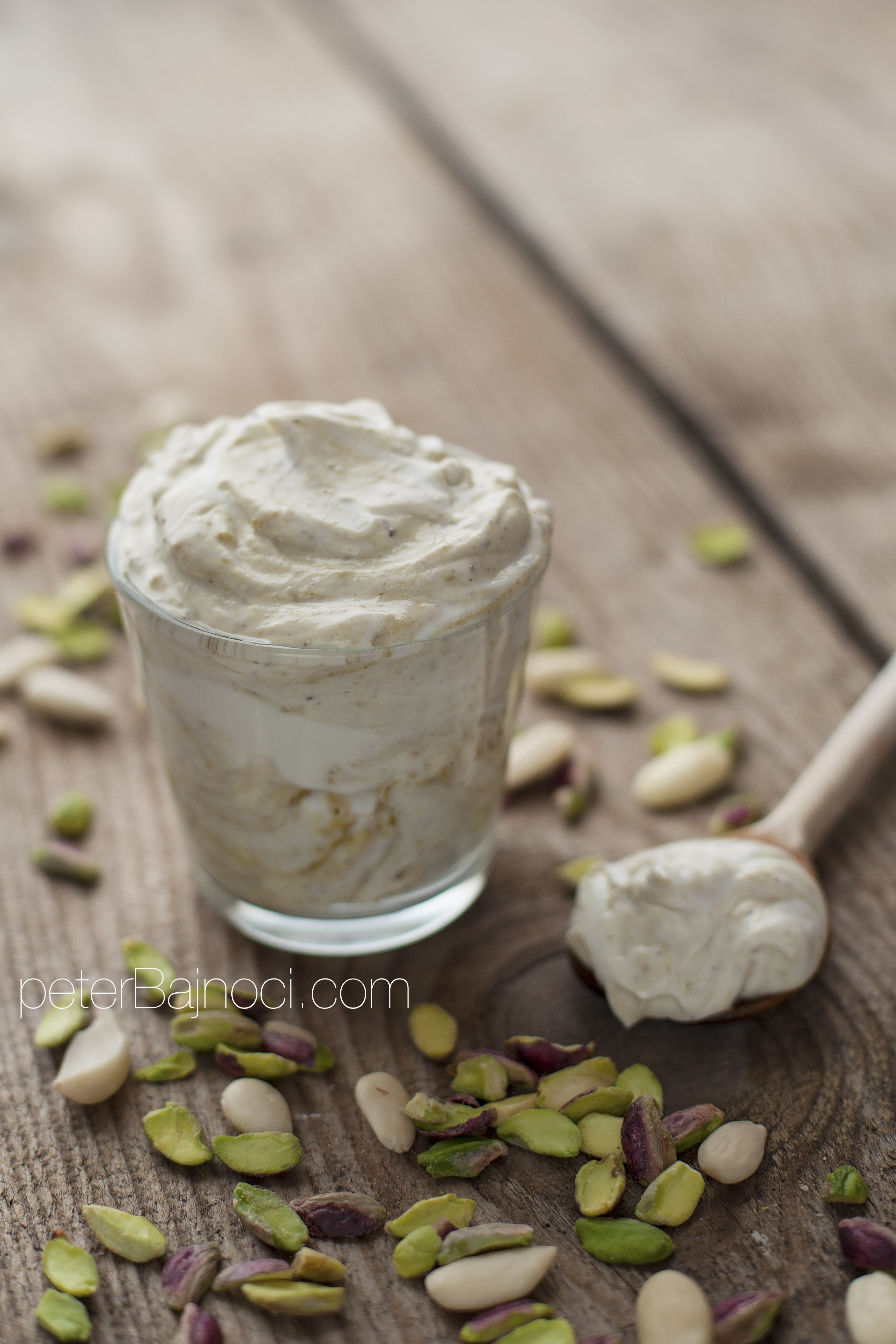 Jaz sem tako dobljeno kremo umešal v domač grški jogurt, ki ga pripravljam na klasičen način s precejanjem doma pripravljenega navadnega jogurta. Če tak jogurt s pistacijami dobro ohladite, bo primerna sladica tudi za te vroče poletne dni.