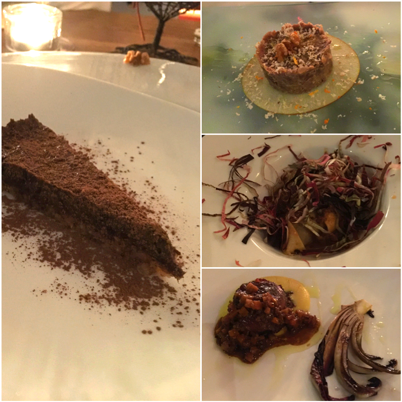 – Goveji vrat, omaka z gosjimi jetri, pire bele čebule, gel črnega česna, krompirjev,tartuf,