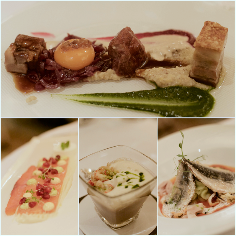– Sardela s trdinkino skorjico, dagnje in lignji, zeliščni pire, čemažev krokant, pomladna zelišča, bela zeliščna omaka