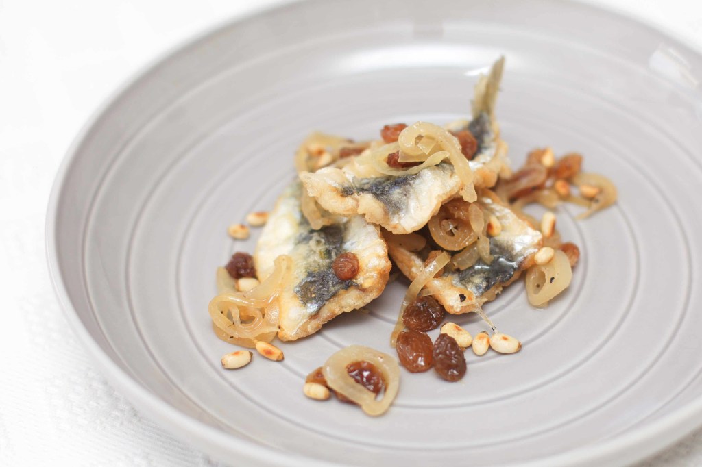 Sardele očistimo in jih prerežemo tako, da se “odprejo” po polovici. Odstranimo glavno kost. Manjših ni treba, ker ne bodo moteče. Sardele pomokamo in jih par minut cvremo v olju, da postanejo zlato rjave. Odstavimo jih na papirnato brisačo.